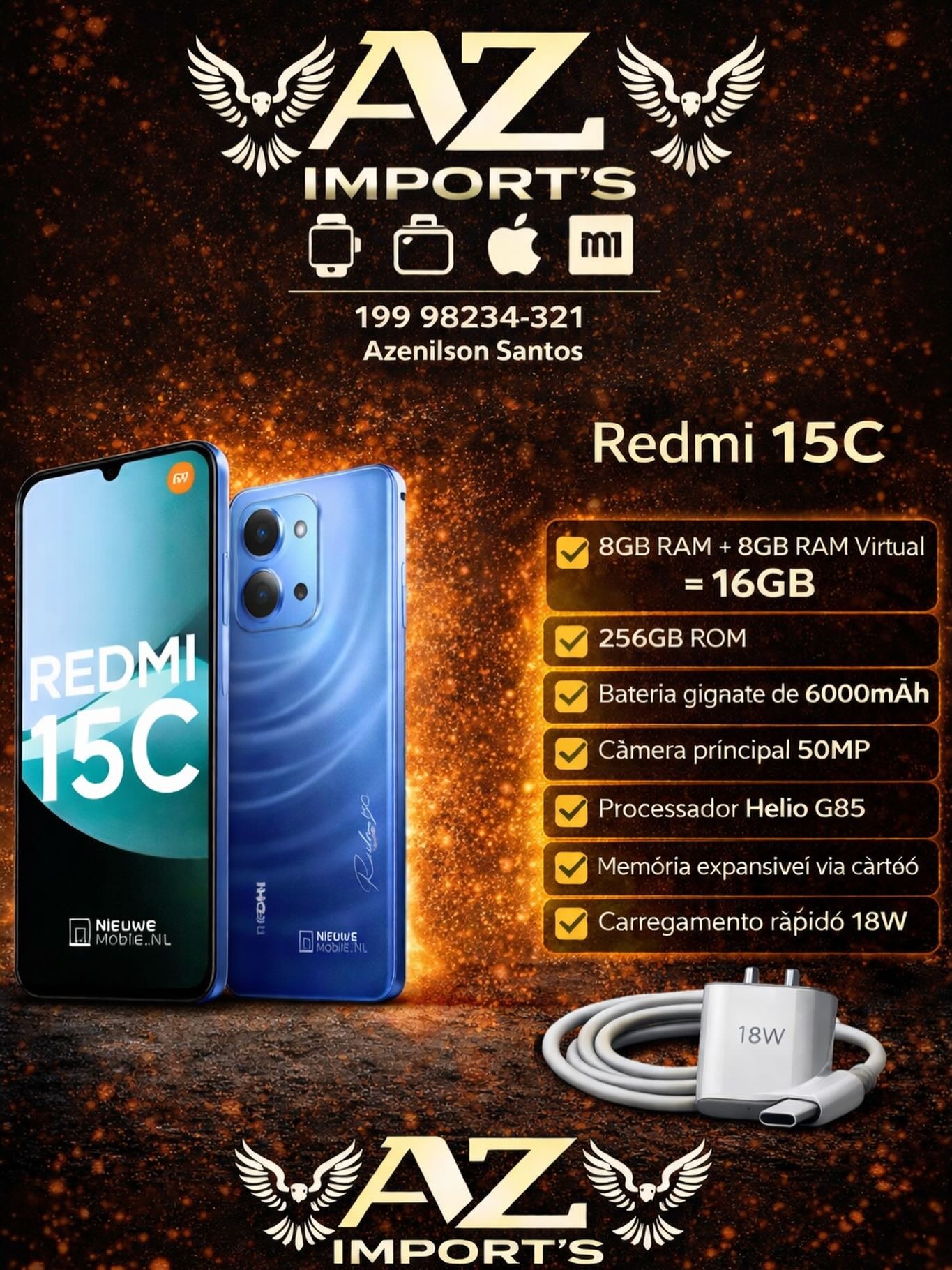 O Redmi 15C é um smartphone moderno ideal para uso diário, redes sociais, jogos e fotografia.
